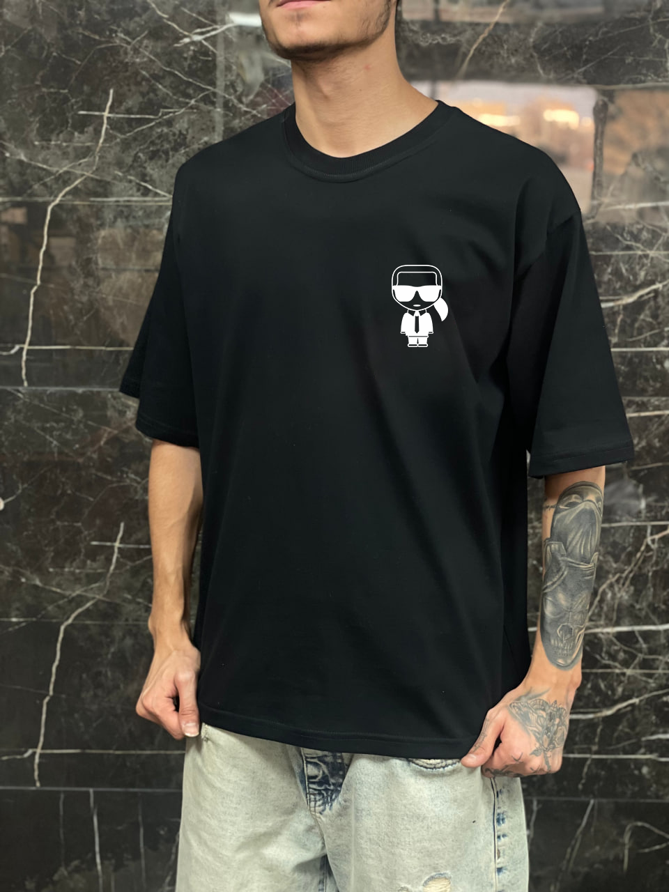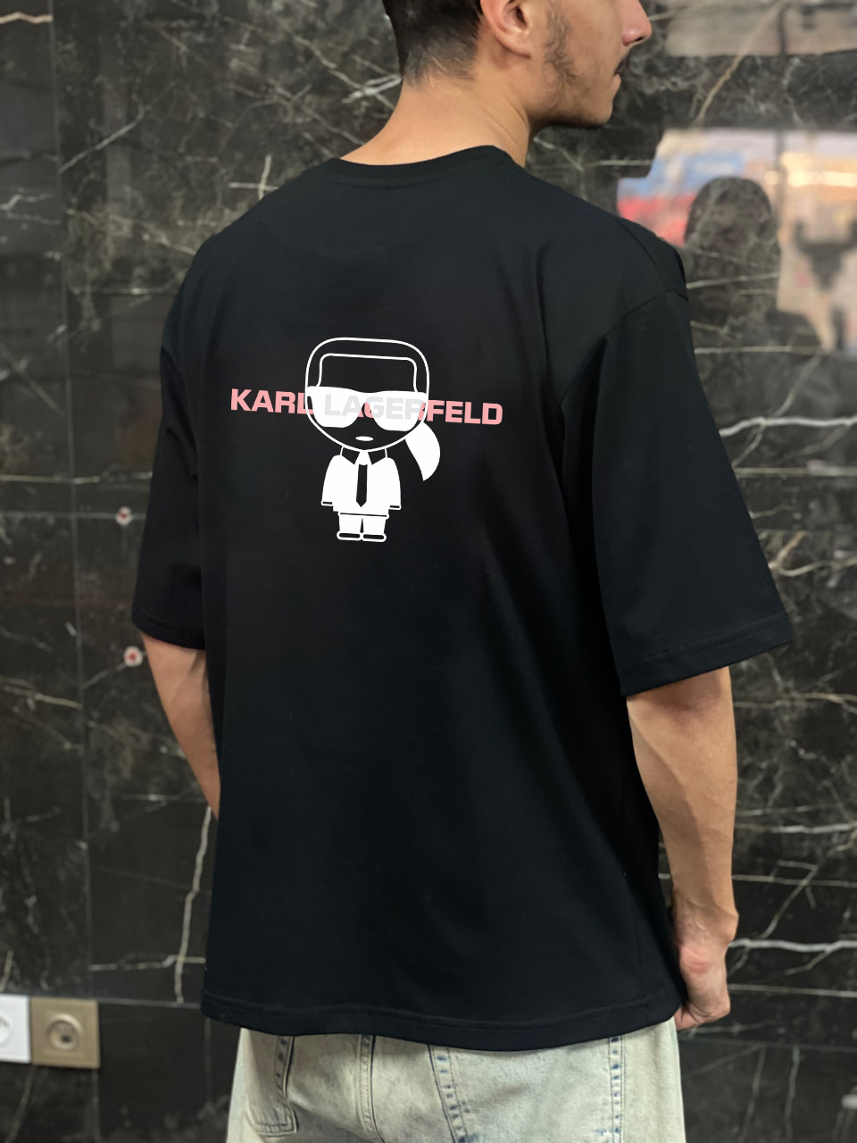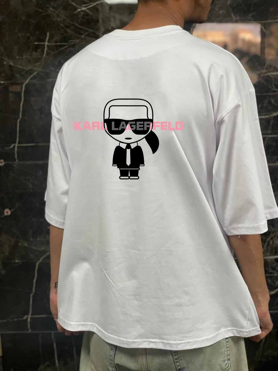 تیشرت باکسی 100 درصد نخ پنبه طرح کارل لاگرفلد